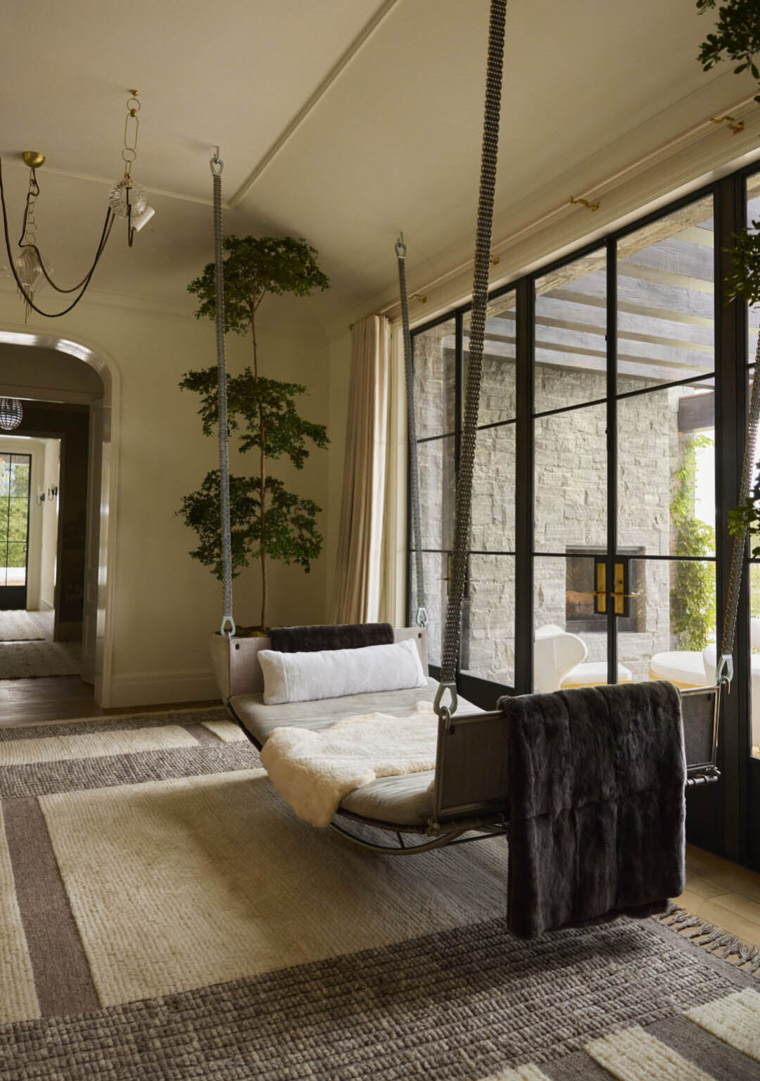 Harmony with nature is at the heart of the Paltrow Home design. Romanek promotes the connection between the occupants and nature through the design, whether through the choice of materials or the collocation of colors, which makes people feel as if they are in nature. "Being immersed in nature, or in the case of interior design, evoking it through certain materials and colors will take you out of the situation and make you more present," she notes.
